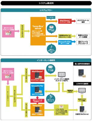 ネットワーク間ファイル交換時のファイル無害化を実現していたSmooth Fileに、当社のメール無害化(添付ファイルの引き剥がし)機能を持つ「Temp Box」との連携機能を実装し、メールに添付されたファイルの隔離先としても利用できるよう機能拡張をいたします。