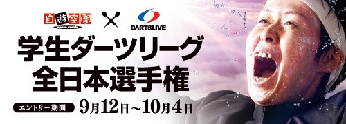 株式会社ランシステム(東京都豊島区、代表取締役社長:日高大輔)と、株式会社ダーツライブ(東京都渋谷区、代表取締役社長:桝本 菊夫)は、「学生ダーツリーグ全日本選手権」をスペースクリエイト自遊空間にて開催致します。