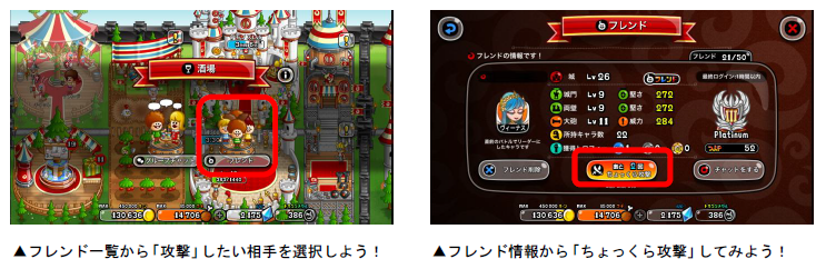 攻撃ができるので、フレンドの城へ攻め込んでキーンを大量獲得しましょう!