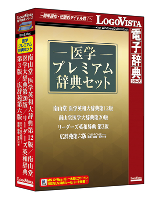 医療従事者から翻訳家まで多くの読者をもつ医学専門辞典「南山堂 医学英和大辞典第12版」、わが国で最も定評のある総合医学辞典「南山堂医学大辞典第20版」、現代英語の語彙・用法を的確に反映し、口語・俗語から多様な分野の専門語まで幅広く採録している「リーダーズ英和辞典 第3版」、百科事典や漢和辞典としても使える「広辞苑第六版-動画・画像・音声付き」、をセットにした製品です。