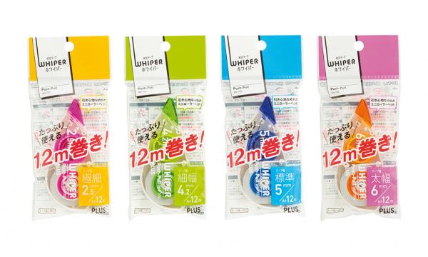 プラス株式会社(本社:東京都港区 代表取締役社長:今泉公二)は、12mたっぷり使える縦引き修正テープの定番品「ホワイパープッシュプル」から、ビビッドカラー4色を2016年9月28日に発売します。