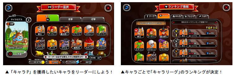 「キャラリーグ」はリーグで勝利すると、そのバトルでリーダーにしたキャラの「キャラP」を獲得
