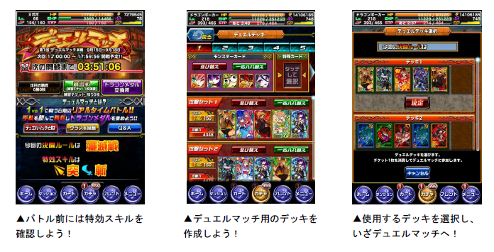 バトルの種類や特攻スキルに合わせたデッキを作成し、デュエルマッチに挑みましょう!