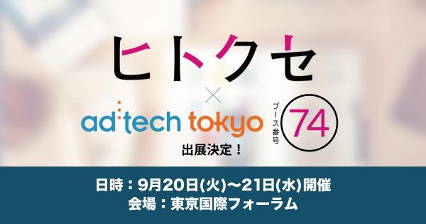 動画広告やネイティブ広告、リッチメディア広告の配信プラットフォームを提供する、株式会社ヒトクセ(本社:東京都新宿区、代表取締役:宮崎航、以下「ヒトクセ」)は、2016年20日(火)~21日(水)の2日間、東京国際フォーラムで開催される「ad:tech tokyo 2016」の74番ブースにて出展します。