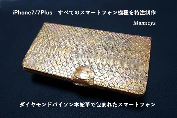スマホプラケースの両側面も蛇革になります。操作部分と画面以外は全部蛇革とお考え下さい。