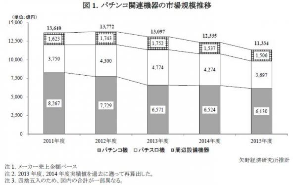 ◆2015年度のパチンコ関連機器の市場規模は1兆1,334億円、前年度比で91.9%
