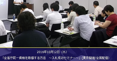 ◆10月12日開催!全省庁統一資格を取得する方法 ~入札成功セミナー~(東京開催/全国配信)◆
