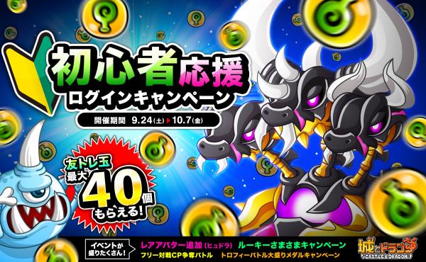 9月24日(土)より、期間中にログインするだけでアイテム「友トレ玉1個回復」が最大40個もらえる