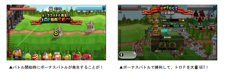 バトルを開始すると「ボーナスバトル」が発生することがあり、バトルの勝敗に関係なく、獲得トロPが