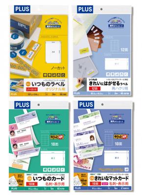 ヘビーユーザーからも高い評価を受けるプリンター適性はもちろん、プラスのOAラベルの最大の特長である豊富な面付バリエーションが好評を得ています。美しい発色が人気のマルチラベル「いつものラベル」シリーズ(2005年発売)を中心に、68種類159アイテムをラインアップ。
