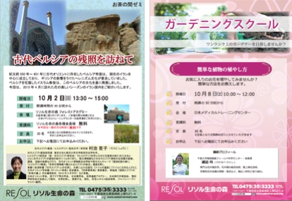 <リソル生命の森「お茶の間ゼミ」2016年10月の各種講座予定>