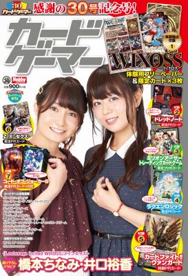 カードゲーム専門誌「カードゲーマーvol.30」は、『WIXOSS-ウィクロス-』体験用フリーペーパー&限定カード×3枚や、『ドレッドノート』限定PRカード、『ミリオンアーサー トレーディングカードゲーム』限定プロモカード、『ラクエンロジック』限定PRカード、『カードファイト!! ヴァンガード』特製PRカード、『Z/X -ゼクス-』限定PRカード、『コード・オブ・ジョーカーS』限定PRカード×6枚など、豪華付録でお届けします。表紙は橋本ちなみさん&井口裕香さん!今号も永久保存必至の内容です!