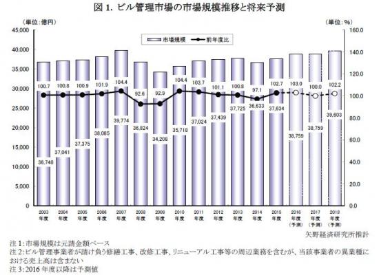 ◆2015年度のビル管理市場規模は前年度比102.7%の3兆7,634億円