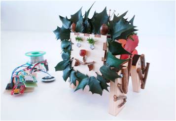 森林が62%を占める高知県佐川町の特性を活かして、小枝や葉っぱや木の実などを使ったロボットづくりを行うワークショップ。従来のロボットのイメージとは違う、子どもたちにとってより親しみ深い外観づくりによって、「自分だけのオリジナリティのあるロボットづくり」への自覚を促し、プログラミング作業まで親しみ深く独自性のあるものへと誘うワークショップの設計を評価した。