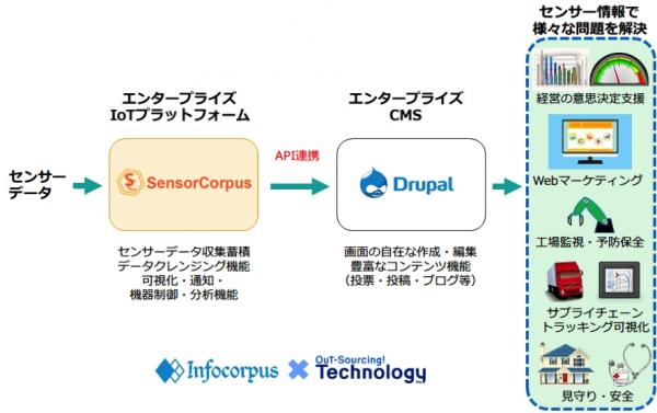 株式会社インフォコーパス(本社:東京都目黒区、代表取締役社長:鈴木潤一)と株式会社アウトソーシングテクノロジー(本社:東京都千代田区、代表取締役社長:茂手木雅樹)は、2016年10月1日よりIoTとDrupalのサービスを連携させ、協業することを決定しました。