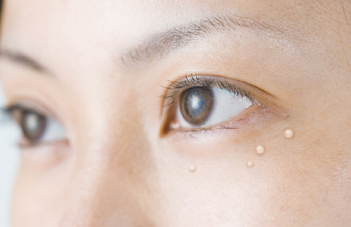 気づいたらいつの間にかできてしまった目元のポツポツ。これは、古い角質が蓄積することによってできる角質粒です。目元の角質粒(※1)は、古い角質内に皮脂が溜まり、白く柔らかいことが特徴です。そのため、セルフケアでは取り除きにくく、病院などで針やメスにより圧出して取るケア方法が主流となっています。また、目元の角質粒(※1)は、体質的にできやすい方もおり、子供や女性に多い傾向があります。特に女性の場合、メイクで隠そうとしてもポツポツ(※1)が目立ってしまい、どのようにケアをすればいいのか分からず悩んでいる方も多くいます。