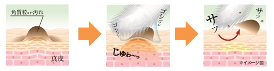 3, 気になるポツポツ部分(※1)にファイバーヘッド先を当て、小さく円を描くように優しくピーリングします。