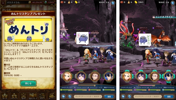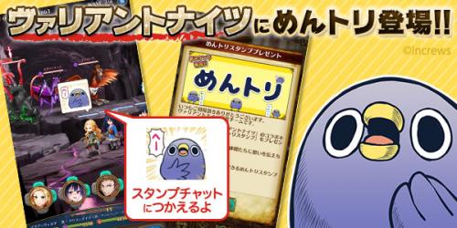 「めんトリ」は全世界で211万ダウンロードを突破したLINEスタンプ「面倒だがトリあえず返信」の大人気キャラクターです。あの「めんトリ」が、本格王道ファンタジーRPG「ヴァリアントナイツ」とコラボレーション企画を行いました!