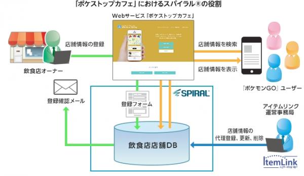 スマートフォンの普及により、飲食店などでSNSやゲームを無料で気軽にインターネット利用したいというニーズが高まる一方、飲食店側はその環境提供への認識が低い状況にありました。『ポケモンGO』の爆発的なヒットを受け、『ポケモンGO』のプレイ中にゲームのアイテムがもらえる『ポケストップ』や、他のユーザーのポケモンとバトルできる『ジム』などに店内からアクセスできる飲食店を紹介するサイト「ポケストップカフェ」を開発しました。「ポケストップカフェ」では付近の『ポケストップ』や『ジム』がある飲食店を検索できるほか、無料Wi-Fi設置の有無や電源の有無などで絞り込むことも可能です。その基盤開発には「スパイラル(R)」が採用され、店舗情報の検索機能をはじめ、飲食店オーナーや店舗情報の登録、管理が行われております。来店した『ポケモンGO』ユーザーにとっては快適なプレイ環境を提供し、飲食店にとっては新たな客層の集客を実現いたしました。