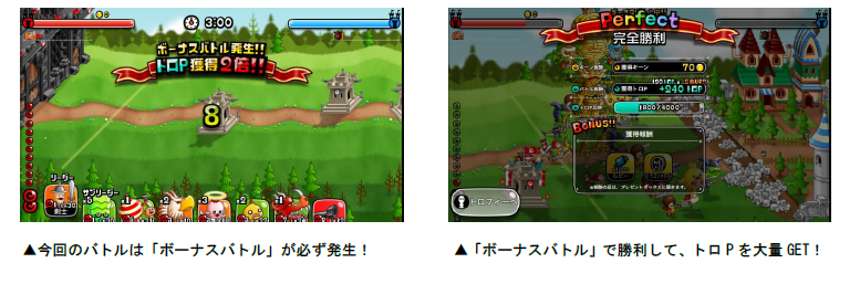 発生します。ボーナスバトルではバトルの勝敗に関係なく、獲得トロPが2・3・5・10倍のうち