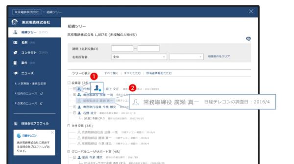 既に名刺交換している人物に日経WHO'S WHO情報が存在する場合は、アイコンでそれをお知らせします。