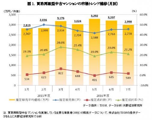 ◆買取再販型中古マンションの推定成約価格は2015年度第4四半期は約2,970万円/戸、2016年度第1四半期は約3,160万円/戸と推計