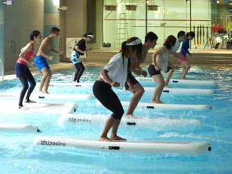 不安定なプールの上にPoolnoを浮かべ、筋力トレーニングから、YOGA(ヨガ)などのエクササイズを行う事で、効率よく体幹を鍛える事が可能になります。