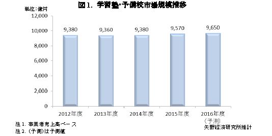 ◆2015年度 学習塾・予備校市場は前年度比2.0%増の9,570億円、