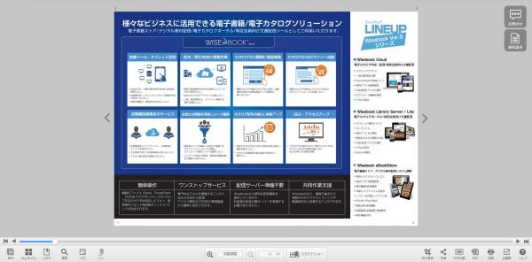 Wisebook Cloudとは、誰でも簡単に商品カタログや営業資料等をリッチコンテンツとして作成・配信できるよう設計されたクラウドサービスです。Wisebook をご利用いただくことで、簡単な操作でお手元のファイル(PPT/DOC/PDF/JPEG) をインタラクティブな電子カタログに変換することができます。
