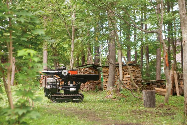 克服したかった薪割り機の重さを自走・旋回する事で作業場所が多様化。