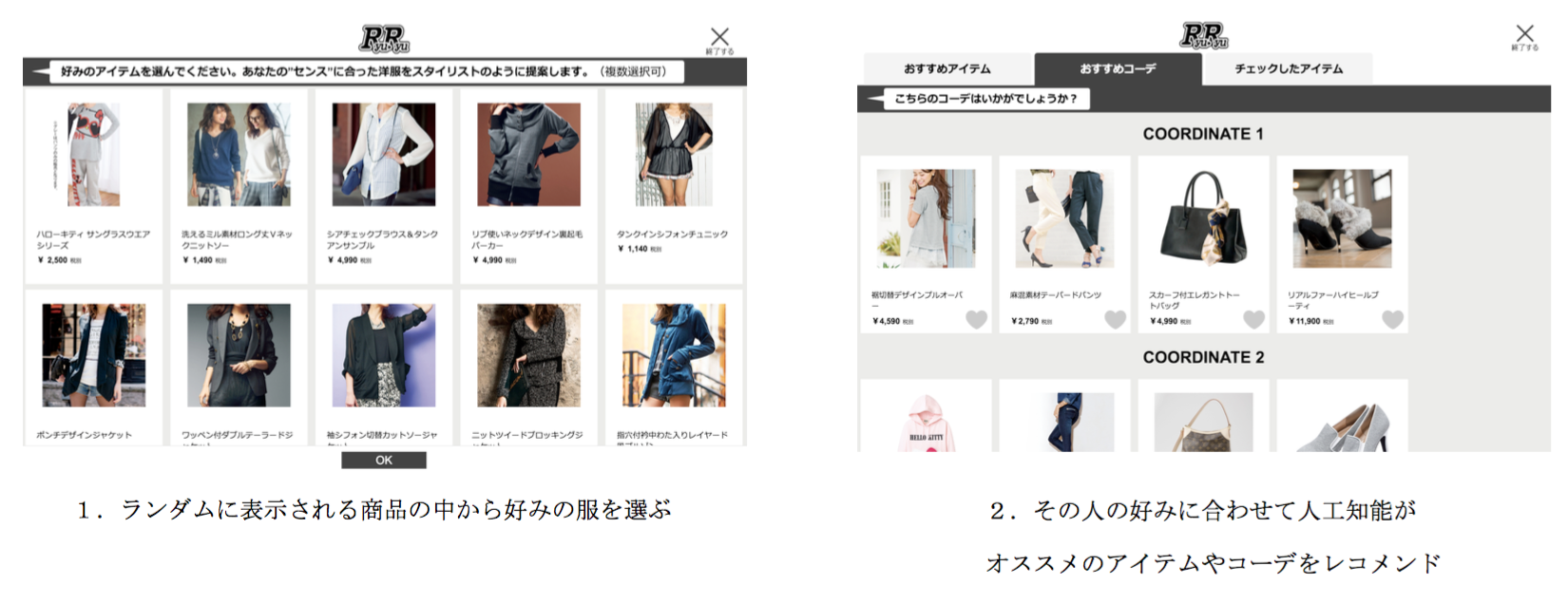 ファッションセンスを学習する人工知能「SENSY」が搭載されたECサイト上のレコメンドサービスです。