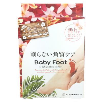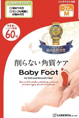 削らない角質ケア「ベビーフット」は、足の裏に溜まった角質を削ることなく自然に落とすフットケア商品です。フルーツ酸をベースに処方されたジェルローションに指定時間足を浸し、洗い流すだけ。古くなった角質のターンオーバーを促し、数日経つと余分な角質が自然の摩擦で優しく剥がれ落ち、赤ちゃんみたいなつるつるもちもちの素足に生まれ変わります。2016年8月末時点でシリーズ累計販売個数が1,270万個に達し、世界53カ国で販売されています。
