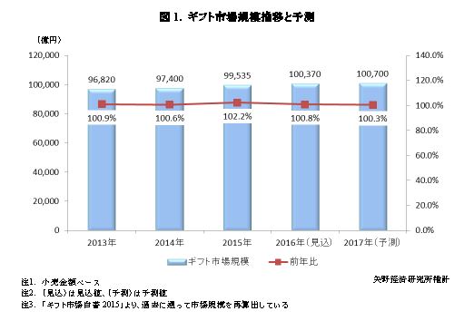 なお本調査よりギフトの流通構造を見直し、小売と卸、あるいはメーカーの販売額が重複していたものを極力小売金額ベースに統一換算し、再算出を行っている。そのためかつての公表値とは乖離がある。