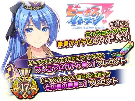 コラボ期間中に『ビーナスイレブンびびっど!』をプレイすると、ログイン回数や一定レベルでオーブや強化素材、ガチャ剣などがもらえるコラボミッション開催中!