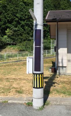 ・巻き付けができるアモルファスソーラーシートなので、φ90の柱からφ400の電柱まで取り付け可能。