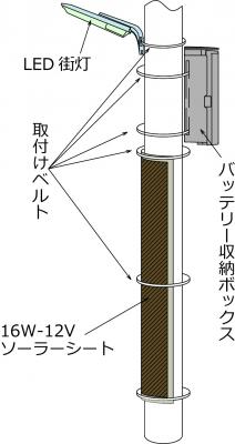 16W-12Vソーラーシート(円柱取付対応可)仕様