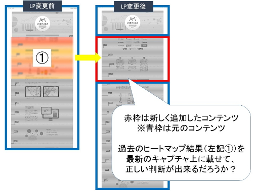 施策内容によっては、過去のヒートマップデータを分析時点(改善後)のページデザイン上で表示しても、データとデザインがずれているため、正しく改善効果を把握することができない場合があります。