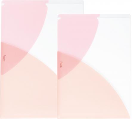 フタ・外ポケットはツヤのある鏡面仕上げ、本体シートは乳白色のマット調に仕上げ、パスティ同様、質感のコントラストを付けました。中身を入れた時の扱いやすさを検証し、フタ・外ポケット(各0.2mm)と本体シート(0.25mm)で厚みに変化を持たせています。通常のクリアーホルダーよりも本体シートを分厚くすることで、耐久性もアップさせました。