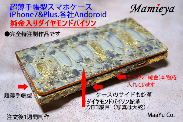 表面蛇革+表純金入り(ランダム)+インナー牛革 35000円 (注)スマホ側面見える側も蛇革http://21j.jp/ggold7