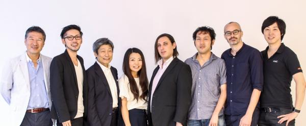 (写真左から、代表取締役副社長 CFO兼CSO小泉泰郎、CCO小出誠也、代表取締役副社長 CAO兼CWO乗松文夫、マーケティング戦略本部 行木宏枝、技術開発本部SAIDI Farid、技術開発本部 太田健介、技術開発本部Guy Callaghan、代表取締役社長 CEO溝口勇児)