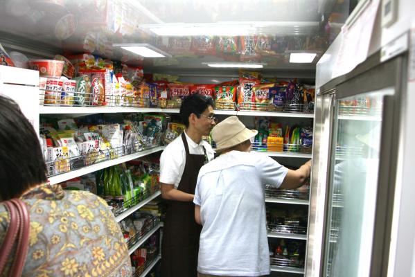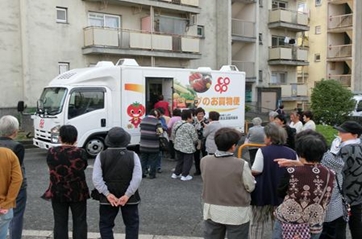 お買い物の困難なエリアで運行している食品・日用品の移動販売車です。