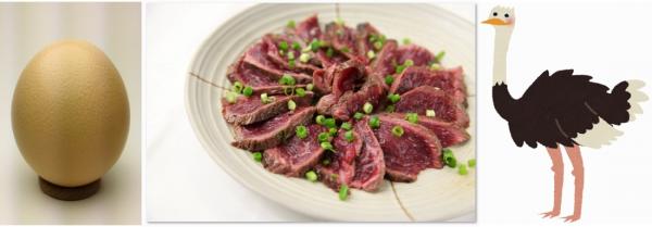 セット内容:ダチョウ肉200~300g(モモ、フィレ、ソーセージ、卵など)