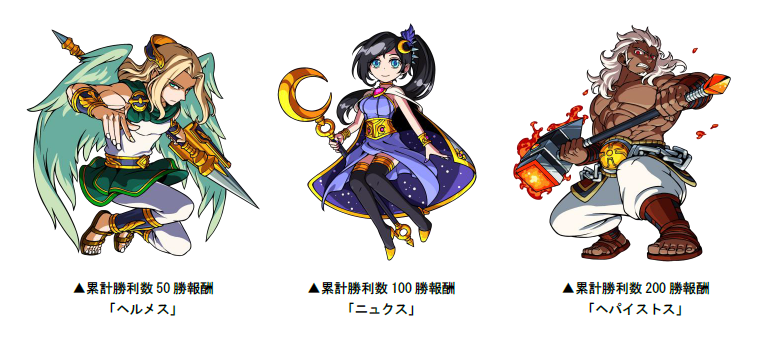 Sレアガチャチケット、女神スキルフェアリー等の報酬を獲得できます。また、累計勝利数の条件を