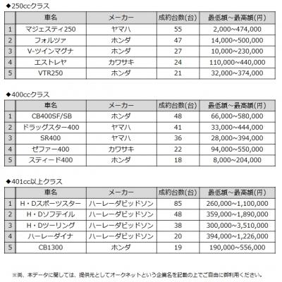 今後もオークネットでは、モーターサイクル市場での成約ランキングのほか、様々な注目度の高い情報を発信して参ります。