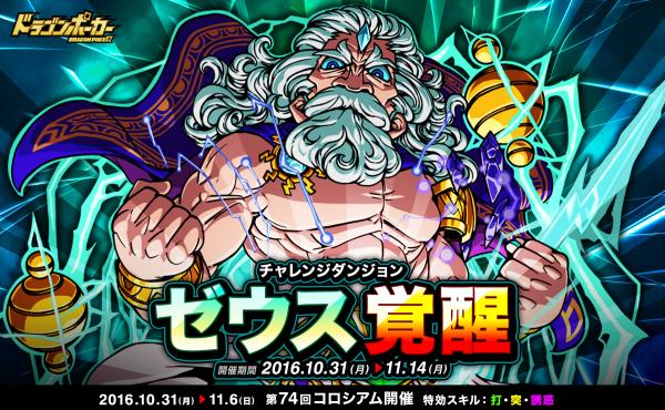 10月31日(月)より、チャレンジダンジョン「ゼウス覚醒」を復刻開催いたします。本ダンジョンでは、