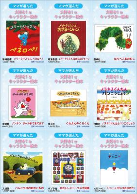 「kodomoe」の読者ママ(web会員)へのアンケート「お子さんが好き、もしくは好きだった絵本のキャラクター」の回答を元に、おすすめ絵本をセレクト。定番からクリスマス絵本まで、9点を対象に展開します。トーハンが毎年冬期に実施している雪のイラストを配した専用帯付きの児童書企画「雪帯」とのコラボレーション企画として展開。帯にはアンケートにご協力頂いた“読者ママの推薦コメント”とプレゼントにつける“メッセージカード”が付きます。