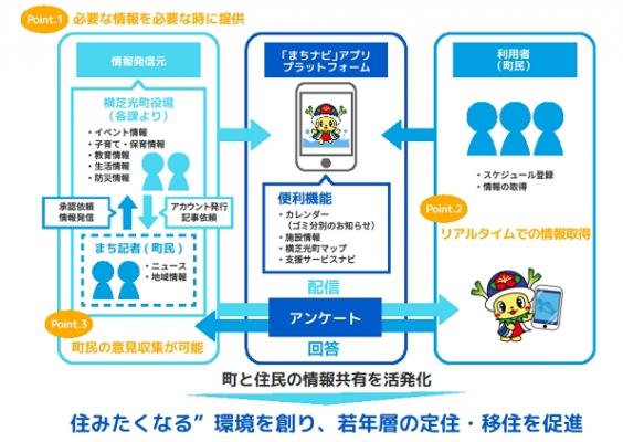 横芝光町は、地方創生事業の一環として、町と住民の情報共有を活発化し“住みたくなる”環境を創ることで、若年層の移住・定住を促進する取組みを進めています。日本エンタープライズは、横芝光町から受託した「横芝光町情報発信アプリサービス開発業務」を通じて、町役場内の各課の担当者が任意に情報を発信でき、住民がスマホアプリでいつでも簡単に情報を入手できる情報配信プラットフォーム『まちナビ』を開発いたしました。