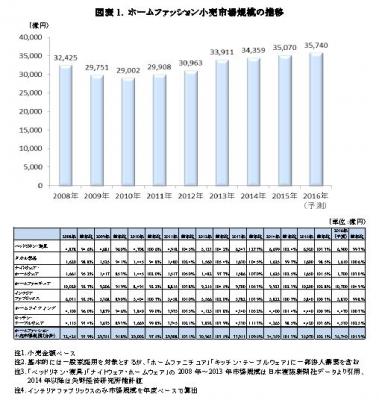 ◆2015年のホームファッション小売市場規模は前年比102.1%の3兆5,070億円とプラス成長で推移