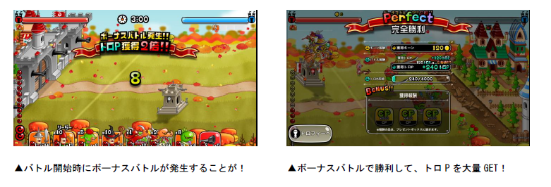 また、バトルを開始すると「ボーナスバトル」が発生することがあり、バトルの勝敗に関係なく、獲得トロPが