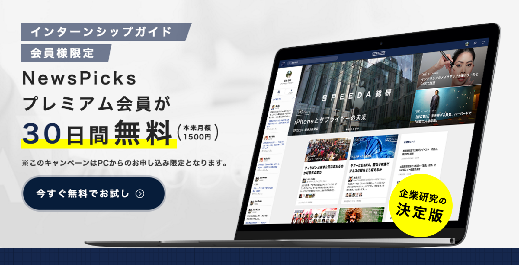 ・特典:NewsPicksプレミアムサービス(月額1500円)を30日間無料で提供